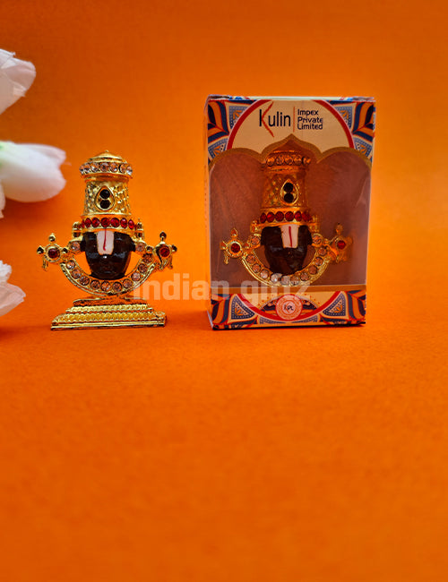 Min Qty-2 Product Description Enhance your space with this exquisitely crafted Tirupati Balaji Murti featuring a radiant gold finish and multicolour stone detailing. Designed with an elegant arch inspired by the Tirumala temple, this compact idol is perfect for car dashboards or home décor, spreading divine blessings and positive energy...