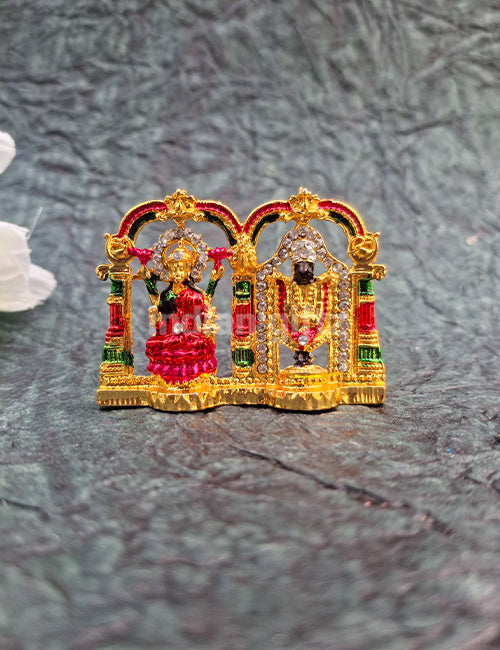 Exclusive Antique Finish Padmavati–Tirupati Idol: Expertly crafted from high-quality metal, this Padmavati–Tirupati idol features a unique antique finish enhanced with sparkling diamond-like stone embellishments.